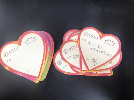 2018年10月15日,在学院领导的带领下公司教职工积极参与了募捐活动,为更好地开展此次募捐活动,公司分工会还特制作了捐款寄语小卡片,让广大参与捐款的教职工写上爱心寄语,展现了我院对贫困地区贫困群众的关心和爱护。