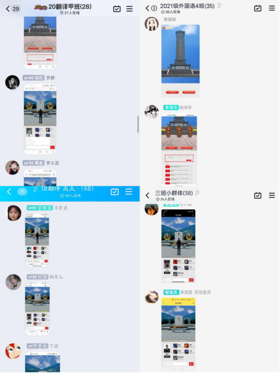 活动伊始,各团支部组织同学们默哀三分钟以祭奠英烈,之后进入中华英烈网,点击“2022奋进、网上祭英烈”专题,为英烈祭扫、敬献鲜花、留下感言寄语、观看视频展播。此外,青年团员通过班级群发表相关话题讨论,讲述英雄故事,抒发心中感怀,致敬革命先烈。