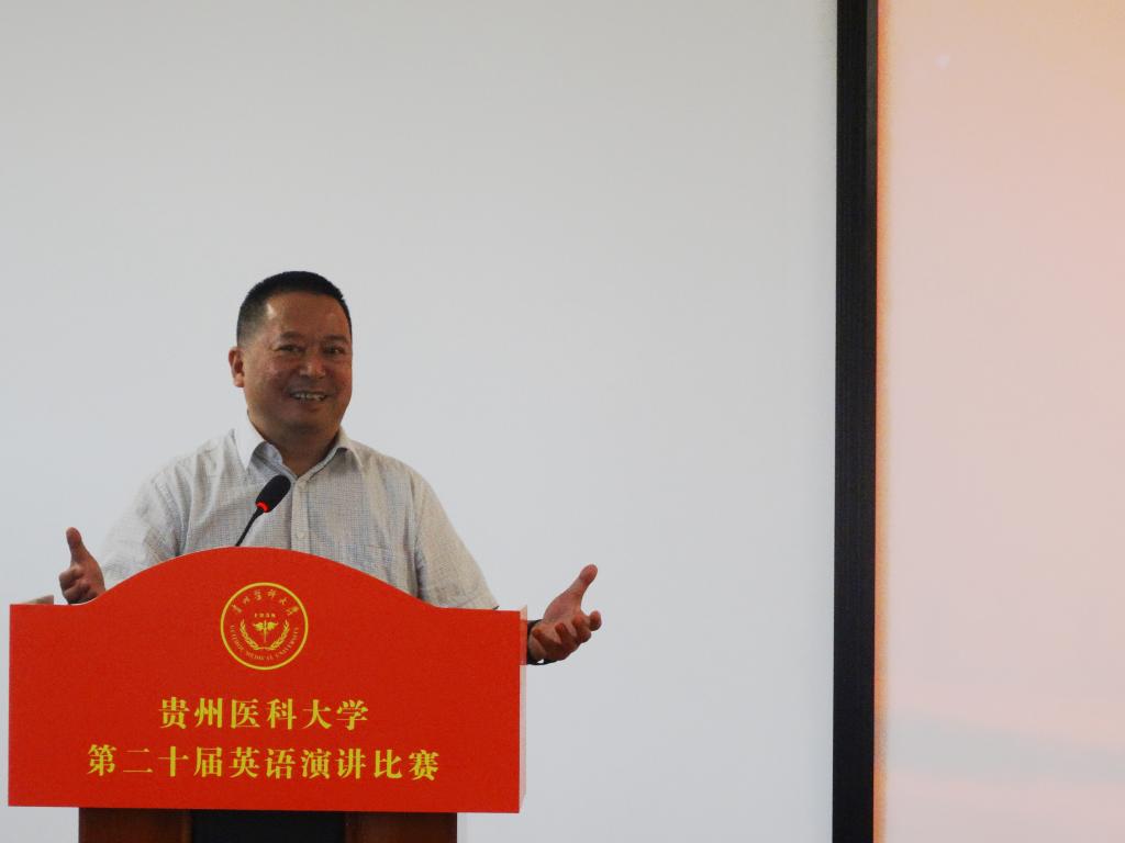 付启宏在用中英双语总结发言中强调语言是沟通世界的桥梁,思想是引领时代的力量。本次比赛不仅是一场英语水平的竞技,更是一堂生动的‘大思政课’。
