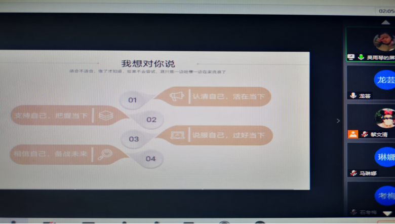 会议由副书记马琳娜主持,会上首先听取了各位暂未就业同学当前的求职情况及未来的求职意向,通过了解目前暂未就业员工的主要求职方向还是省考及事业单位考试等;有8人进入特岗教师的面试,公司将组织教师专门为这部分同学组织面试技巧培训;由公司为员工推荐的贵州财经职业学院外聘教师岗位,目前有5名同学进入试讲环节,公司也将组织教师为这些同学做出教学指导。推进会上由公司合作实习基地华启教育推荐上岗的蒋深灿、吴雨琴同学分享自己的求职心理路程,鼓励同学们要勇于尝试,不要畏首畏尾,相信自己,找到自己喜欢的事情并坚持下去。最后张婷婷书记、龙芸经理寄语同学们,要转变思想,不要局限于体制内,正确认识成长成才之路,尽快转变观念,积极就业。