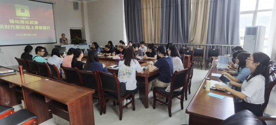 8月16号上午,公司党委书记张婷婷同志在学院5楼会议室,以“强化理论武装,在新时代新征程上勇毅前行”为题给所在的教工党支部党员上党课,学院教工党支部全体党员参加。